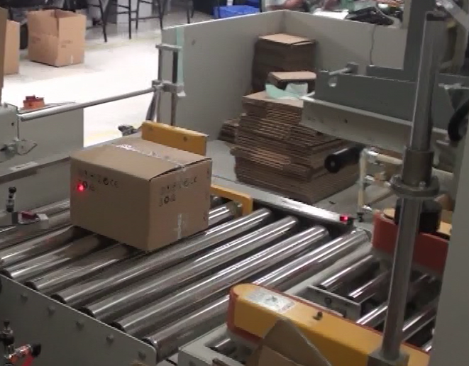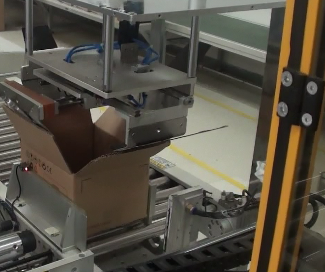 4.流水線組成:整條流水線由自動開箱機(jī)——自動貼標(biāo)機(jī)——自動裝隔板——物料自動抓取——產(chǎn)品自動裝箱——全自動折蓋封箱機(jī)——全自動四角邊封機(jī)組成,實(shí)現(xiàn)不同的子產(chǎn)品在同一條流水線完成裝箱。